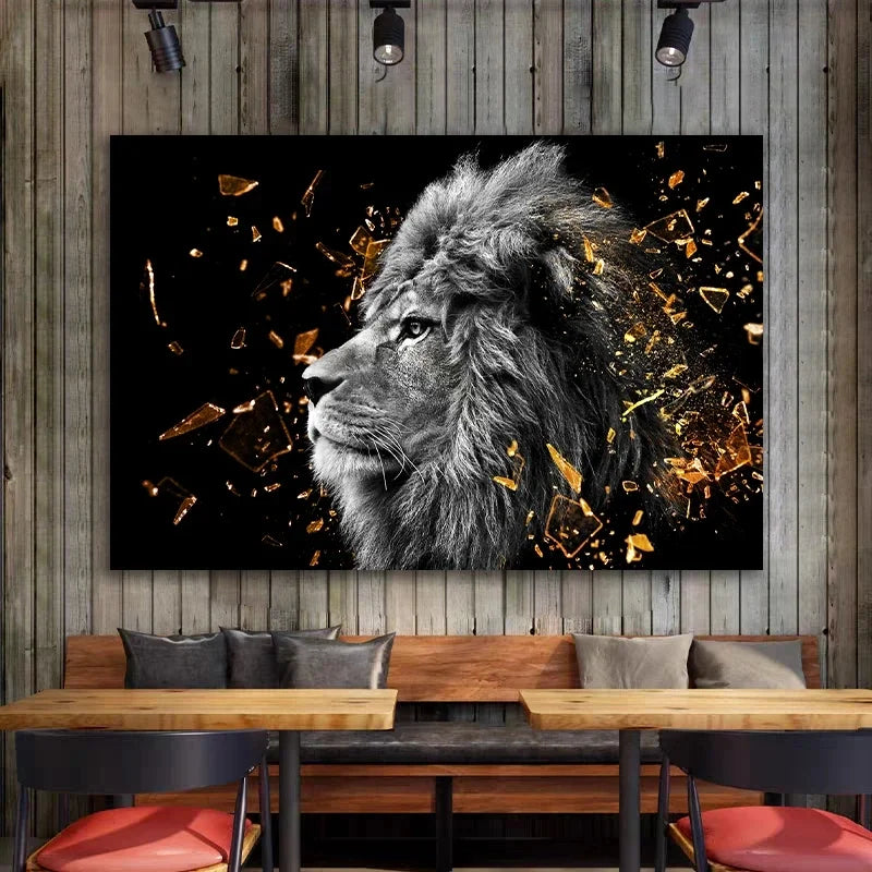 Attirez le regard avec ce tableau lion impressionnant, parfait pour donner du caractère à vos murs. L'art du roi des animaux est capturé avec des couleurs et des détails époustouflants, créant une pièce qui fascine et émerveille. Transformez votre espace avec une pièce maîtresse qui respire la force et la majesté, apportant une atmosphère unique à votre intérieur.
